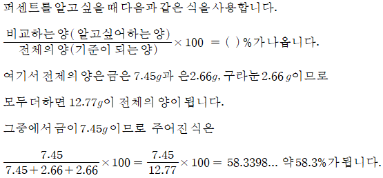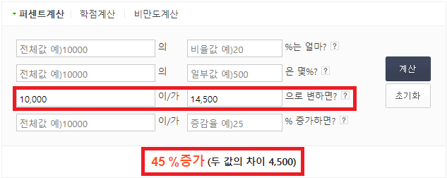 다음식은 퍼센트계산기 2에서 구한 것과 같이 구하면 됩니다.