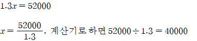 30%가 추가 붙었으니 52,000원은 130%에 해당되는 금액입니다.