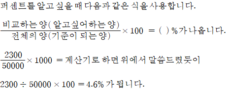 이 식에 익숙해지면 2,300 ÷ 50,000 × 100의 계산이 빨리 나올 수 있습니다.